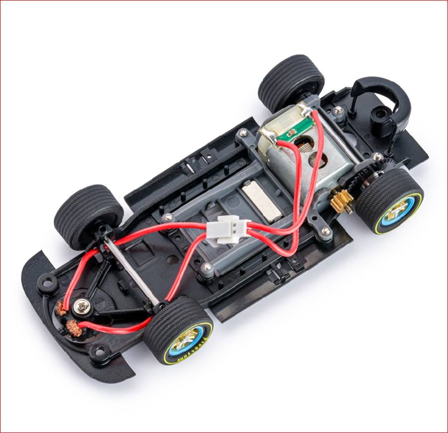Inclou mecànica Slot.it, que permet configuracions en SideWinder, Anglewinder i In-line.