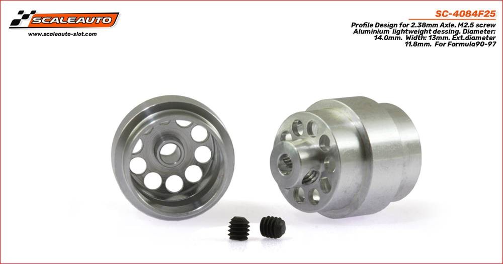 Aluminium wheels 14 x 13mm. Lightweight. Axle 3/32″. For FORMULA 90-97.