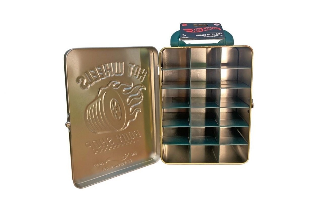 ¡Llevá tu pasión por los coches a otro nivel! Esta espectacular caja metálica de la línea Hot Wheels Legends está diseñada para almacenar hasta 18 coches Hot Wheels en compartimentos individuales. Con un diseño vintage y robusto, homenajea el espíritu de la marca desde 1968.
