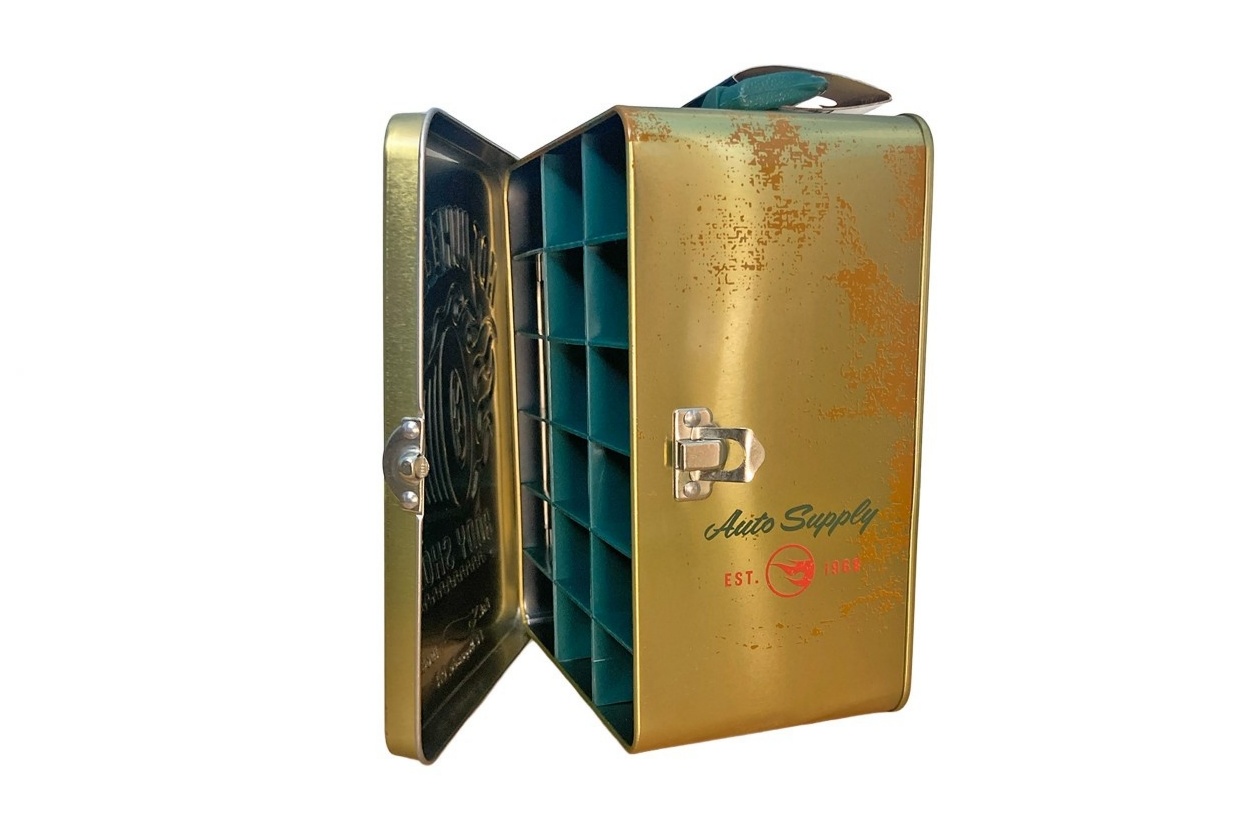 – Diseño: Estilo retro con detalles en relieve y gráfica desgastada tipo garaje clásico+ – Tamaño ideal para coleccionistas que quieren proteger y exhibir sus piezas favoritas-