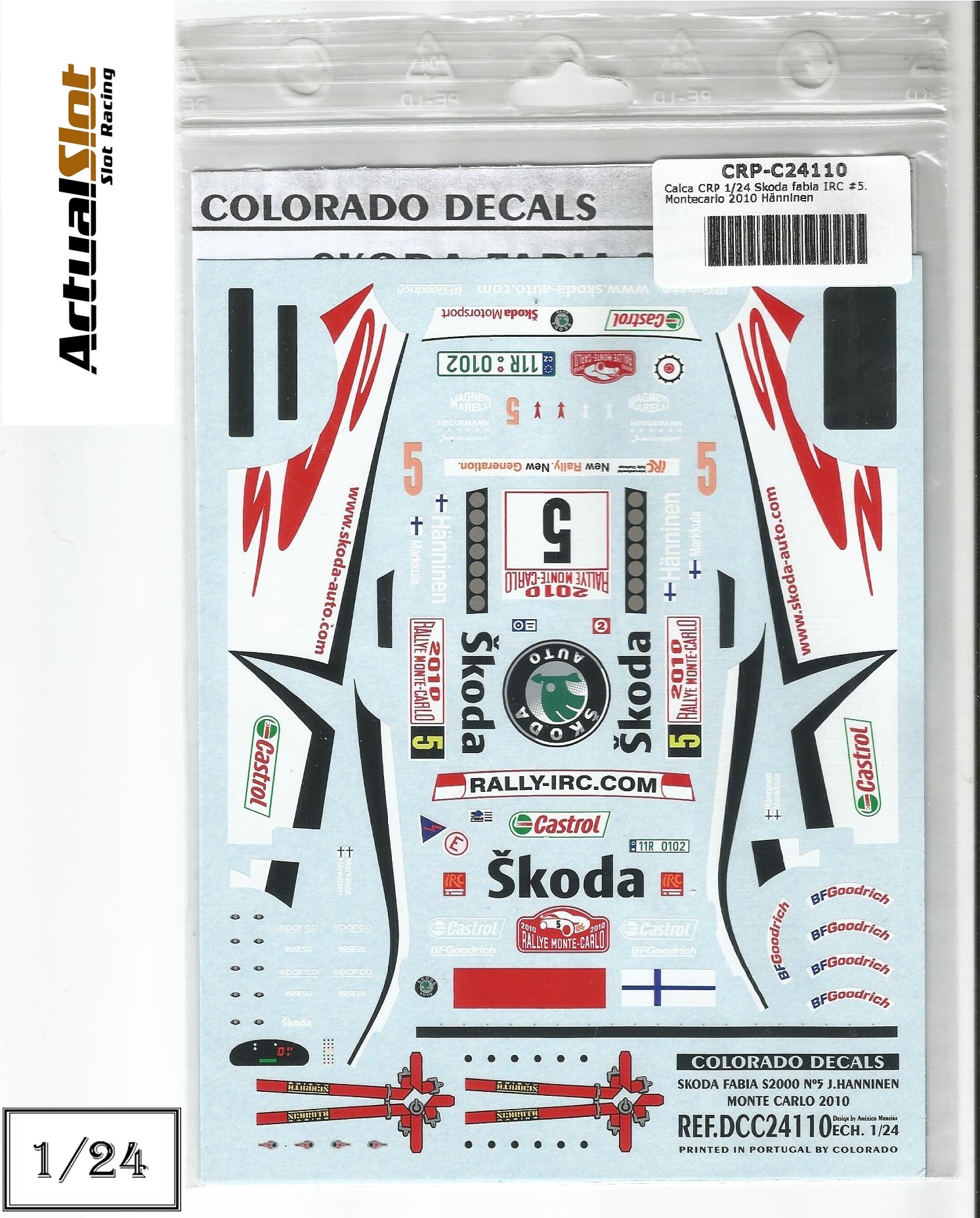 Calcas para el SKODA FABIA S2000 1/24, del piloto JUHO HÄNNINEN – MIKKO MARKKULA. 2º en el Rallye de Montecarlo 2010.