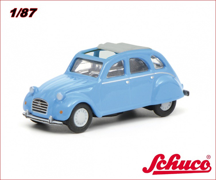 Citroën 2 CV con lona abierta, azul. (1/87).