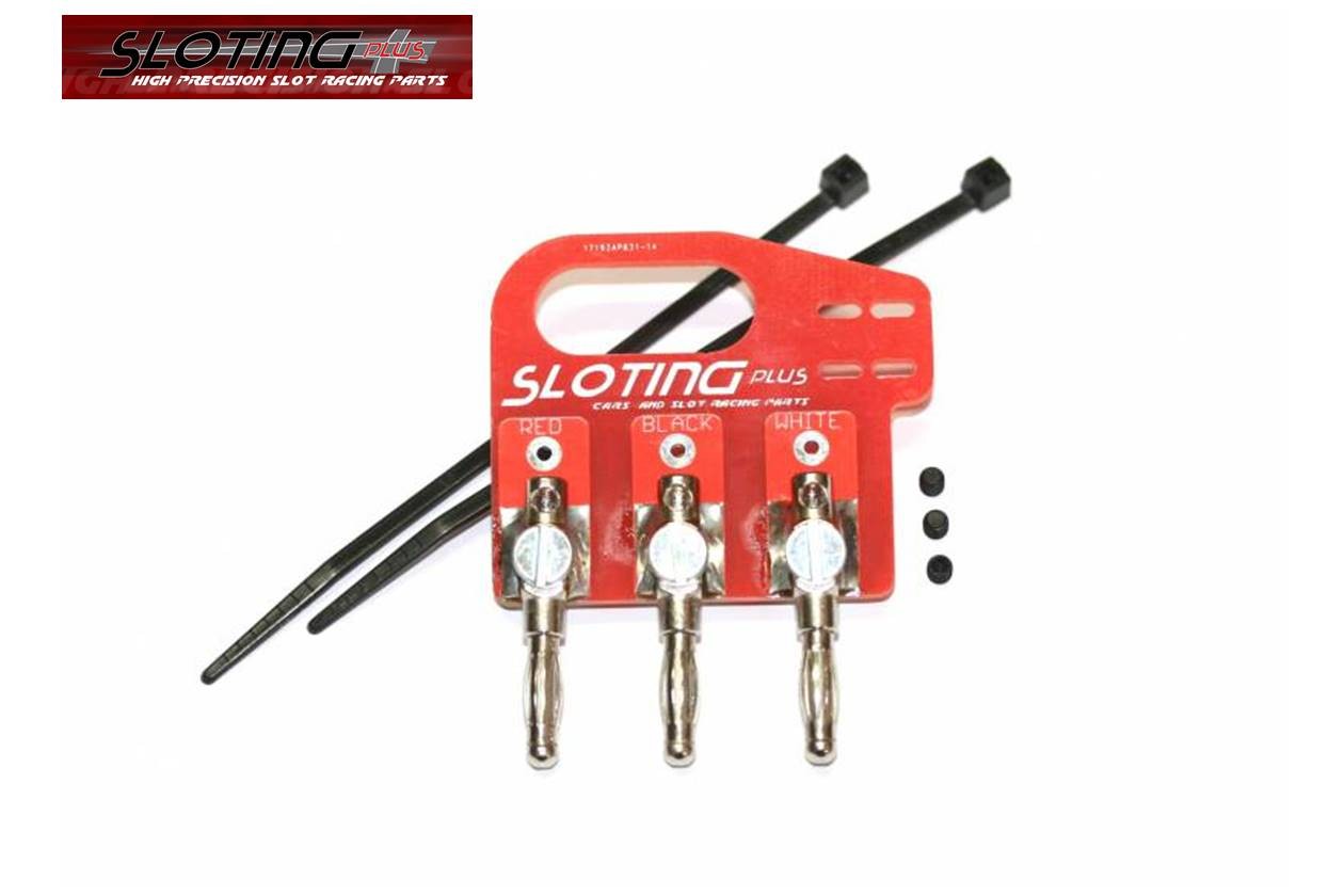 Fibra y metal – 3 bananas de 4 mm. con espárrago allen M3x3 – 2 bridas – bolsa con 1 unidad