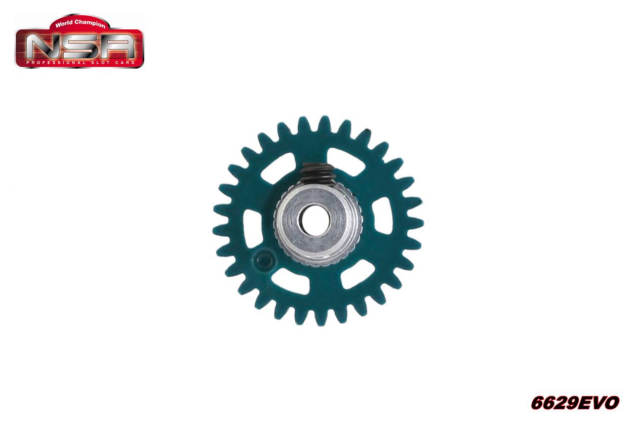 Corona 29d. plástico. Diámetro 16mm. para eje de 3/32″. Equilibrada aligerada.