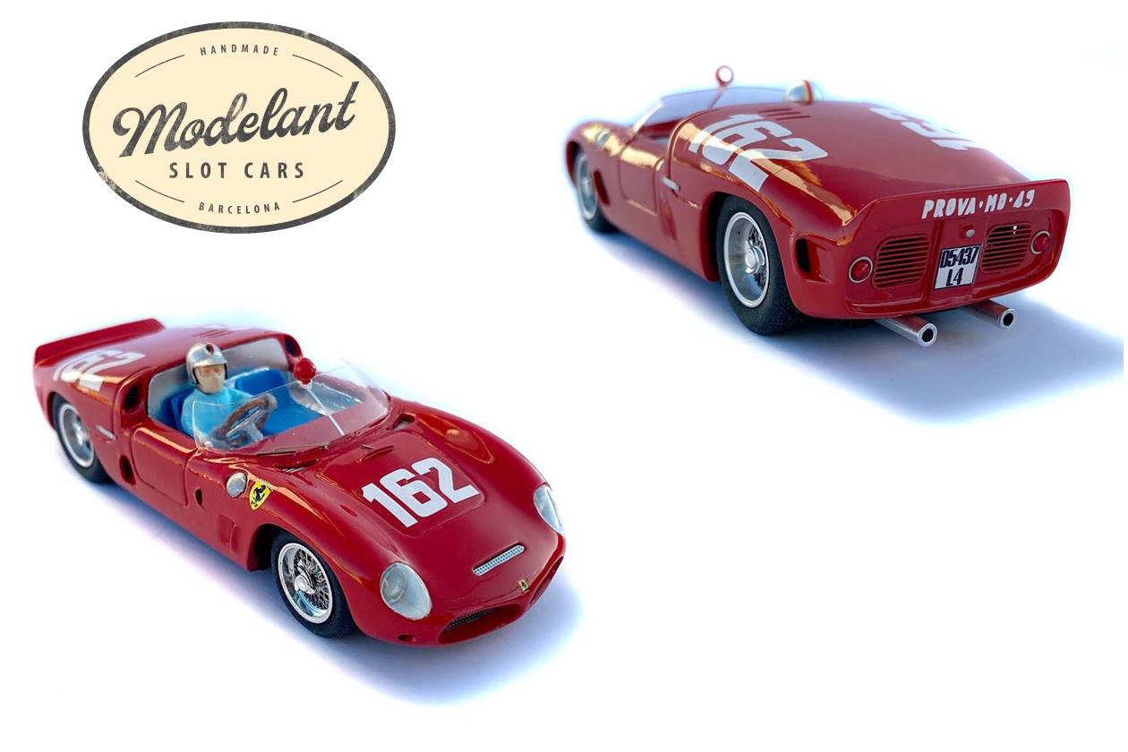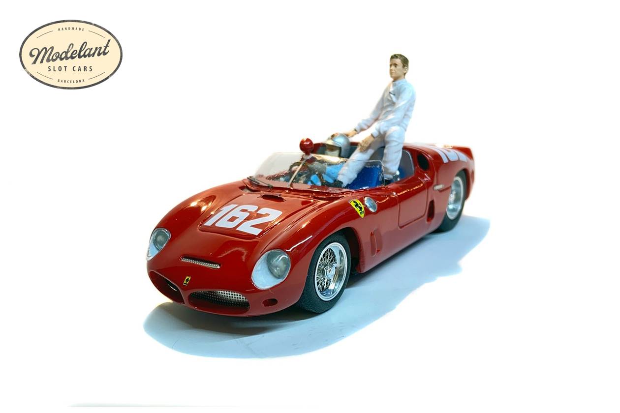 Estamos ante un modelo inédito en slot, el Ferrari 246 SP, vencedor de la Targa Florio de 1961 a manos de Olivier Gendebien y Wolfgang Von Trips. Hemos respetado al máximo la escala 1:32, con una reproducción que hemos modelado completamente a mano cuidando el más pequeño detalle. Fabricado íntegramente en nuestro taller de Sabadell, al lado de Barcelona, de forma totalmente artesanal.